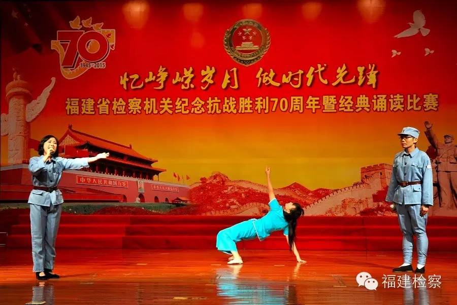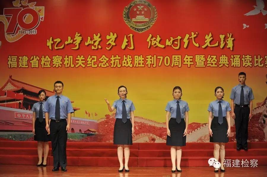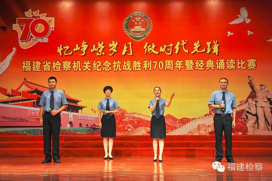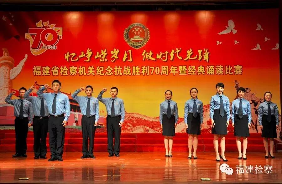 不,不,都不是。这是福建省检察机关纪念抗战胜利70周年暨经典诵读比赛的初赛现场。为传承以爱国主义为核心的民族精神,激励广大检察干警牢记历史,奋发图强,在党的十八届五中全会刚刚闭幕之际,由省院政治部、机关党委主办、各设区市院协办的主题为“忆峥嵘岁月 做时代先锋”的福建省检察机关纪念抗战胜利70周年暨经典诵读比赛在金秋时节正式登场。